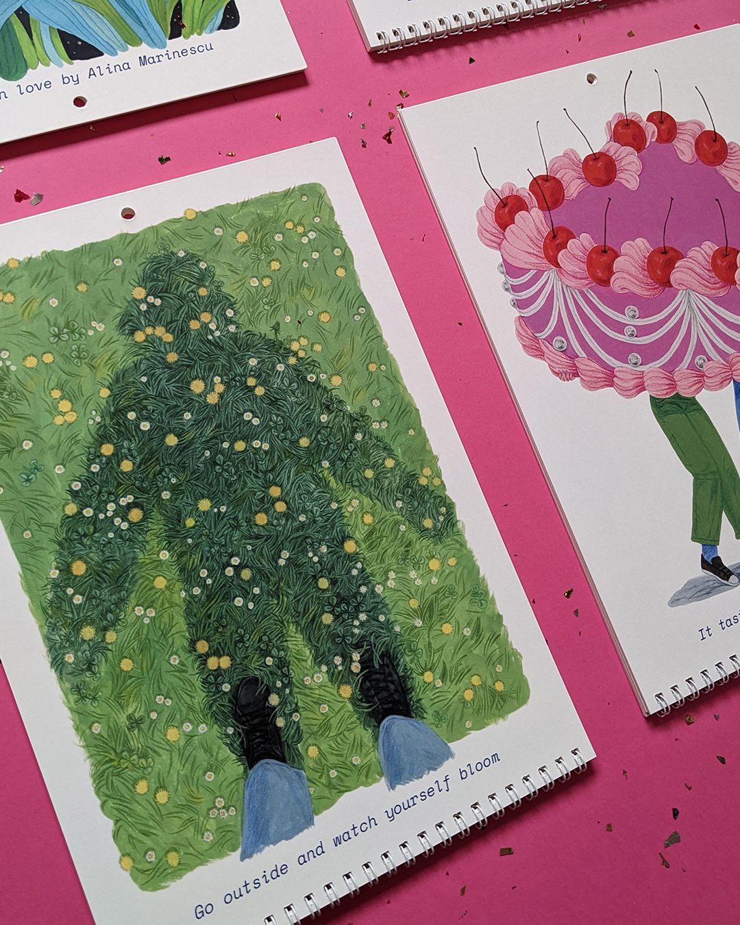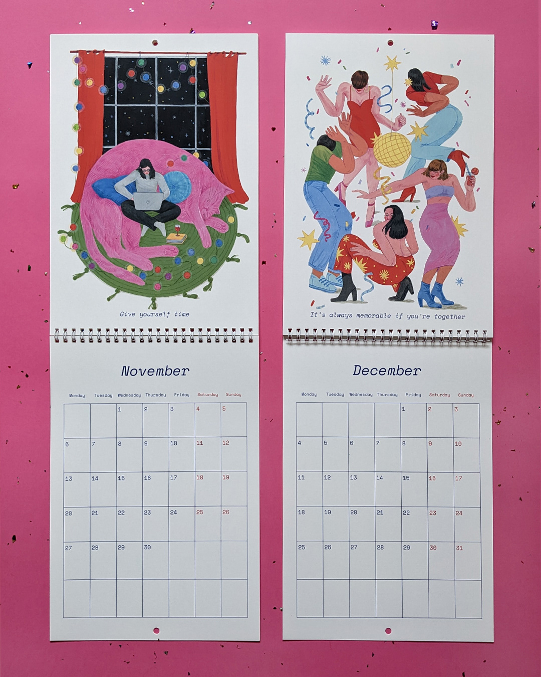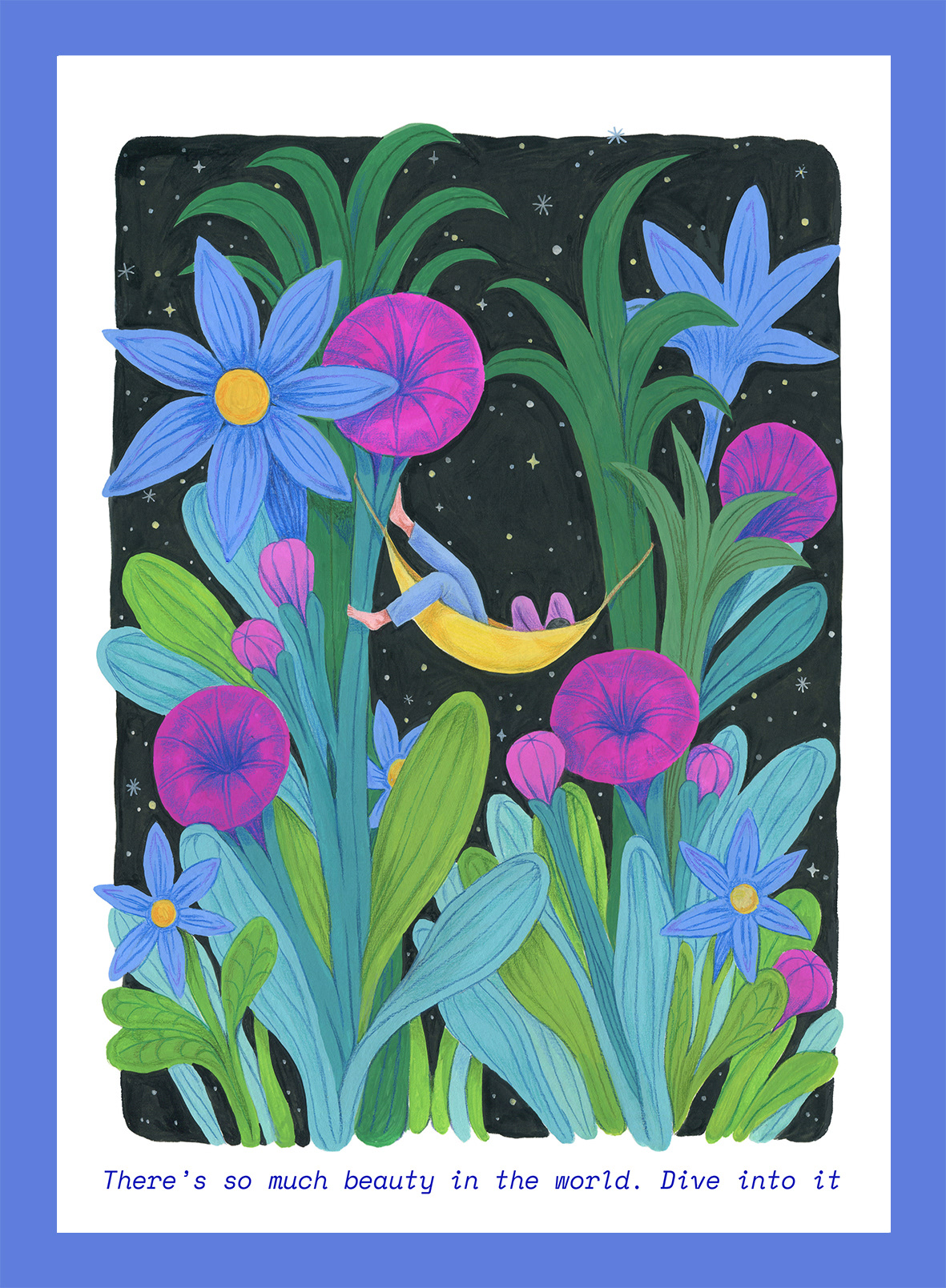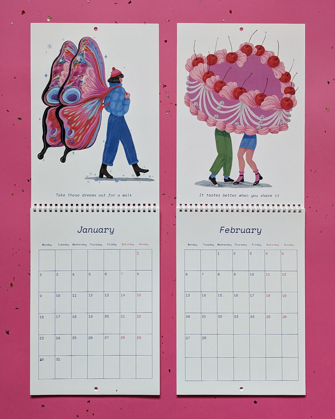 All 12 illustrations were originally handpainted with gouache & colored pencils on paper.